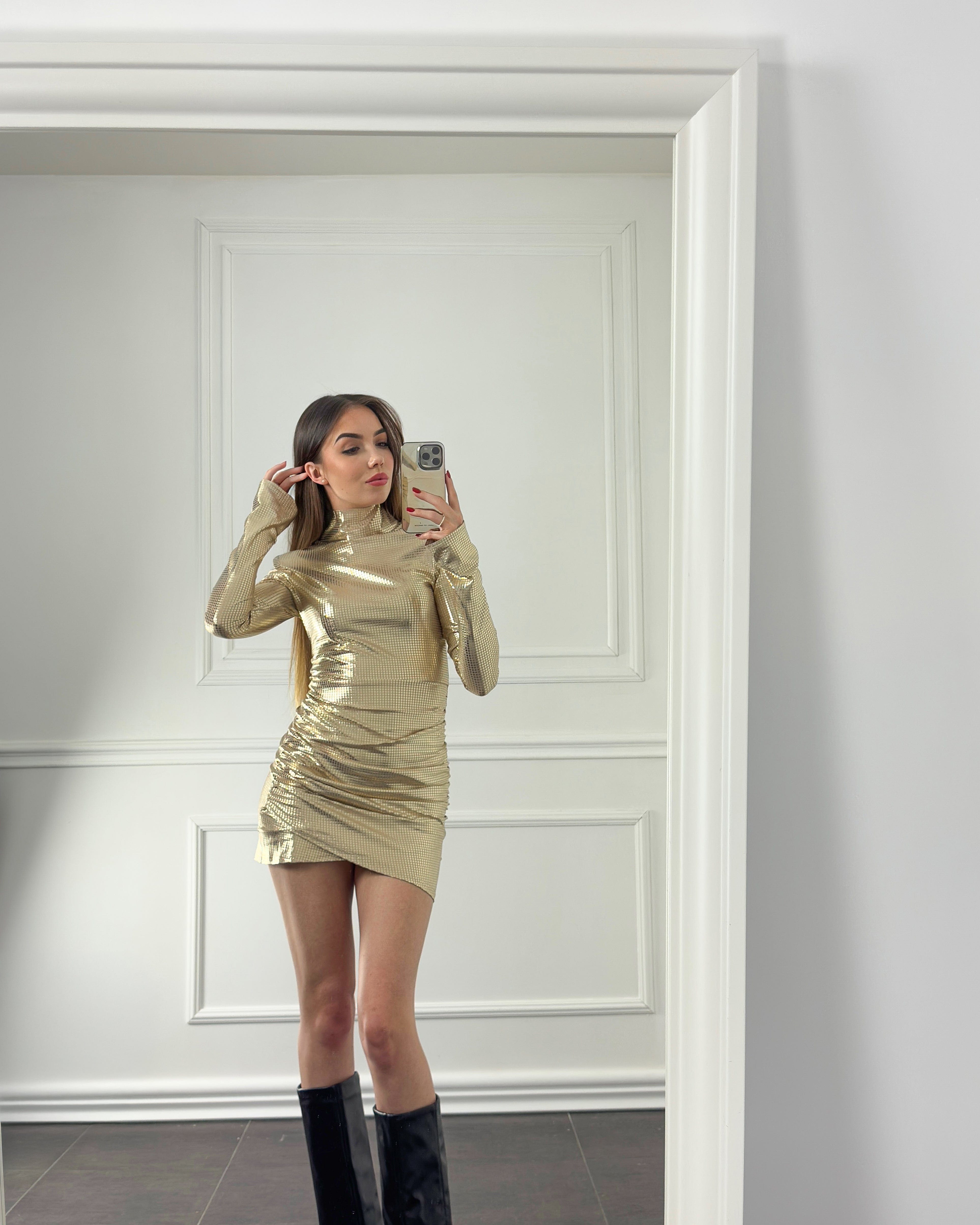 LUCY Złota Połyskująca Sukienka Mini z Marszczeniem